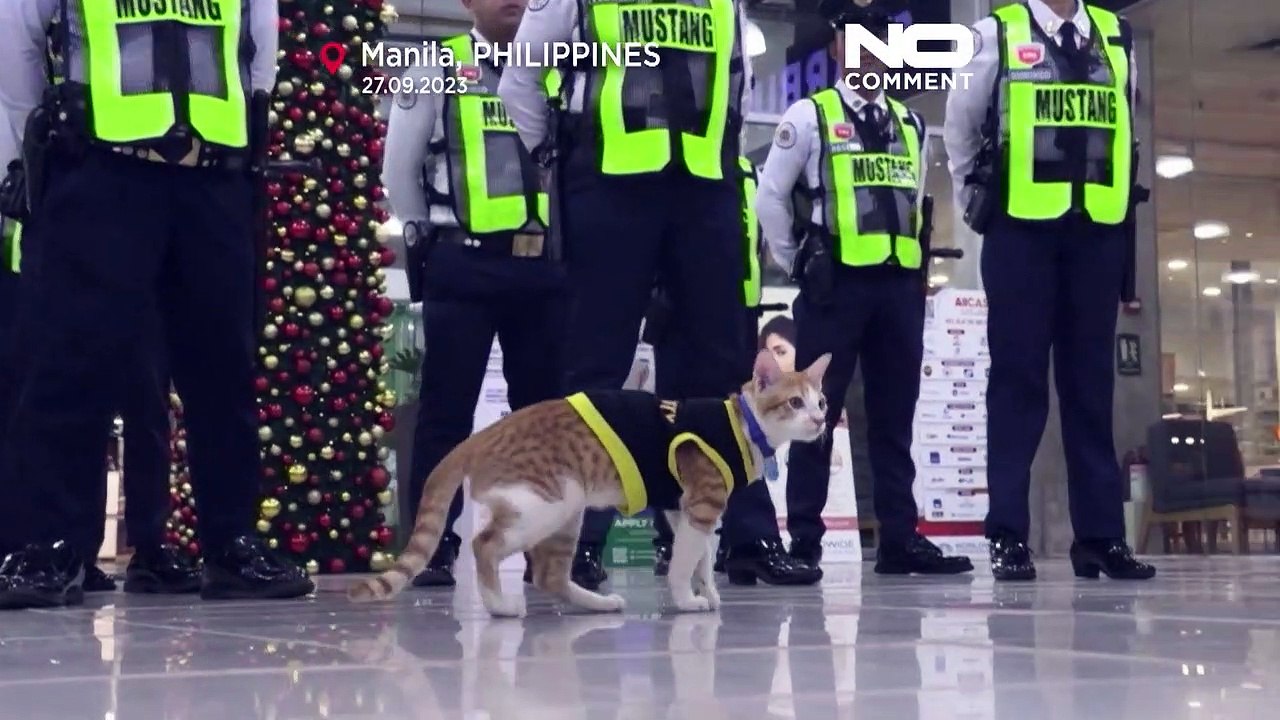 شاهد: للحراسة والتسلية.. عناصر أمن في الفلبين يتبنون القطط الضالّة