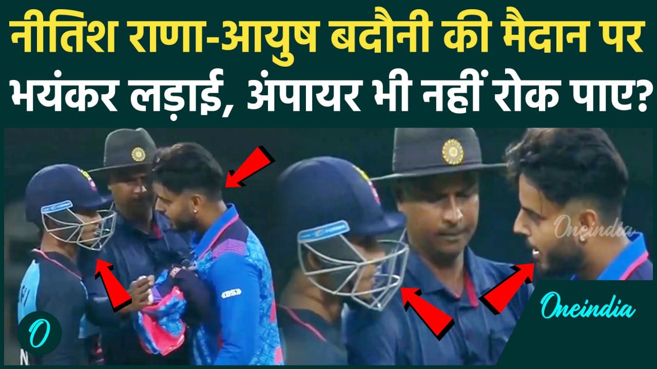 Nitish Rana और Ayush Badoni के बीच Chinnaswamy में हुई भयंकर लड़ाई, Umpire भी बेबस | वनइंडिया हिंदी