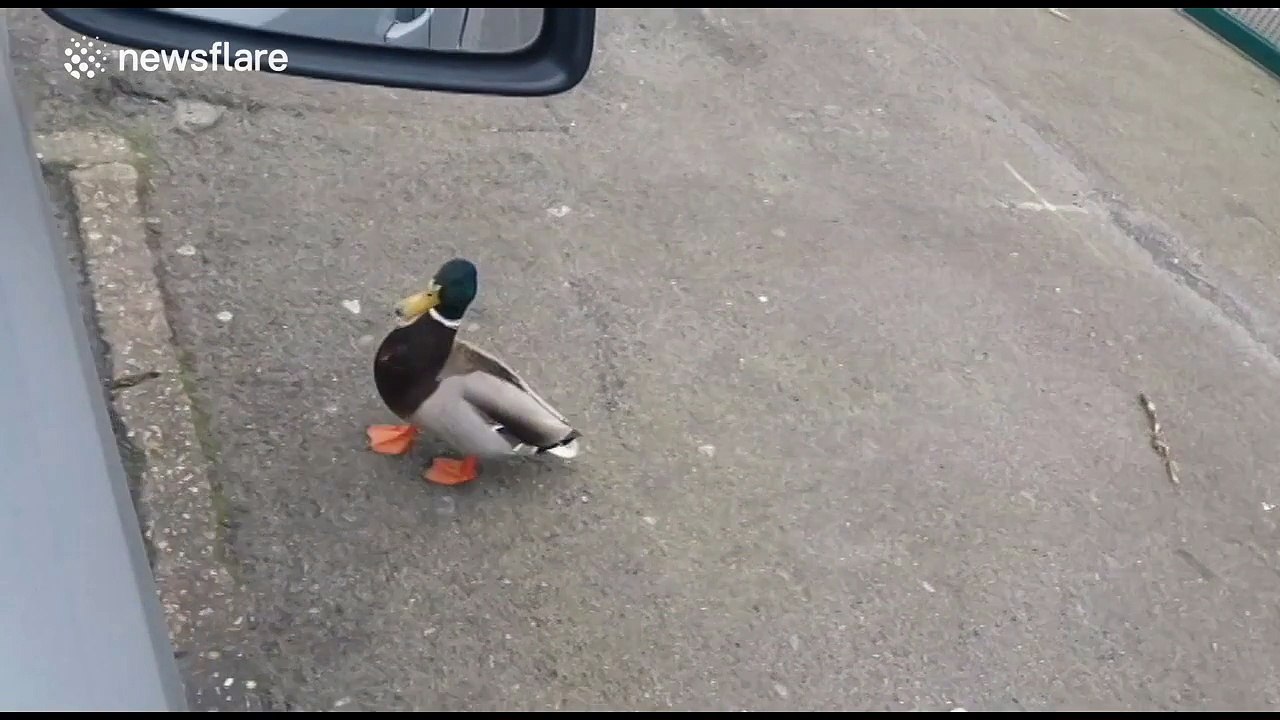 Angry duck tries to attack car passengers