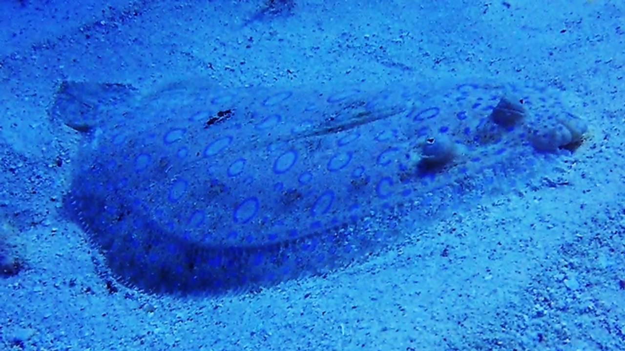 Beautiful peacock flounder becomes almost invisible
