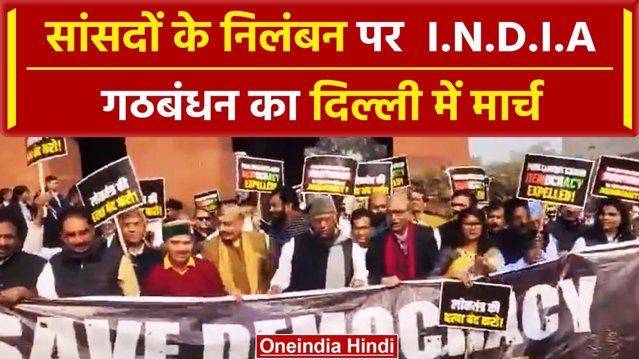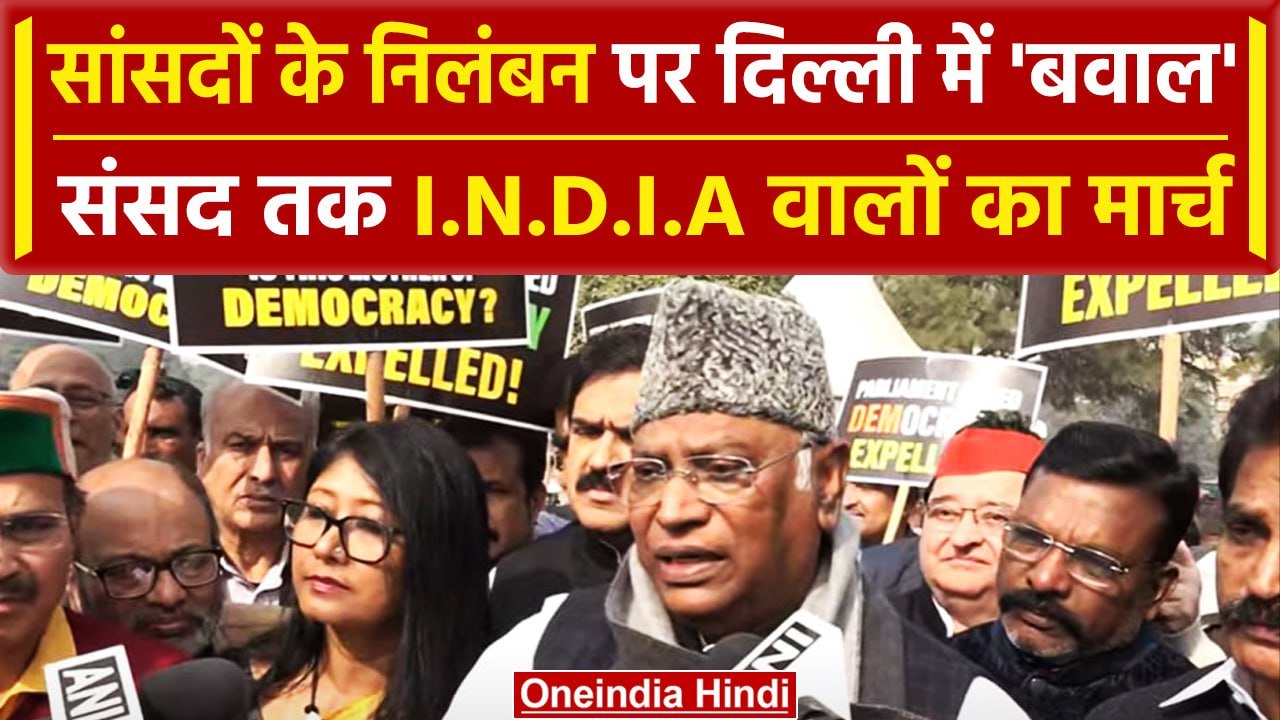INDIA Alliance Meeting: MP Suspension पर INDIA Alliance Protest | Mallikarjun Kharge |वनइंडियाहिंदी