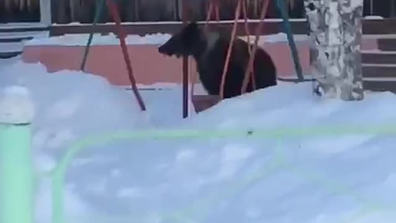 Wild bear in Russia casually plays on swing set