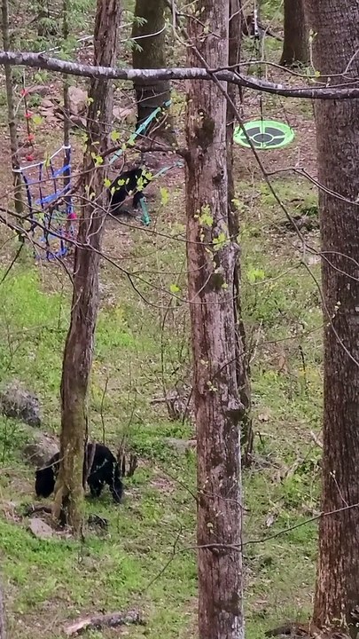 Wild Bear Cubs Play on Swing