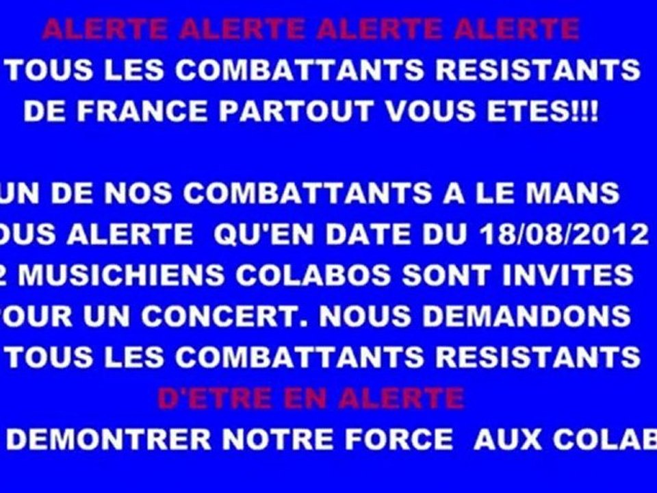 ALERTE ALERTE ALERTE A TOUS LES COMBATTANTS RESISTANTS