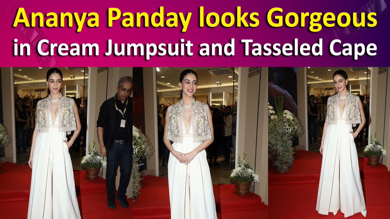 Ananya Panday looks Gorgeous in Cream Jumpsuit and Tasseled Cape