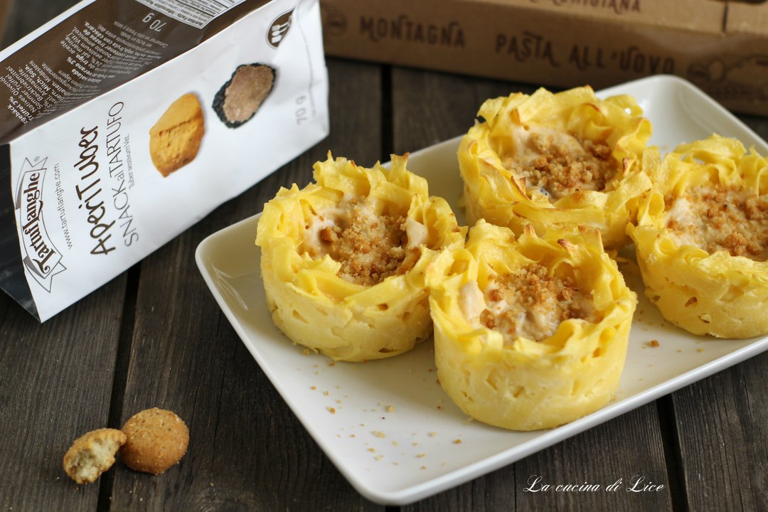 Cestini di tagliatelle cremose con tartufo