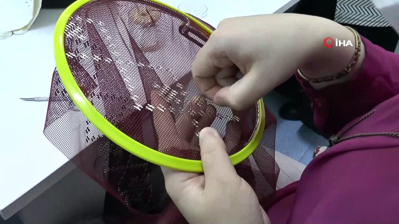 Geleneksel tel kırma eğitimi alan kadın kursiyerler birbirinden güzel nakış çeşitleri yapıyor