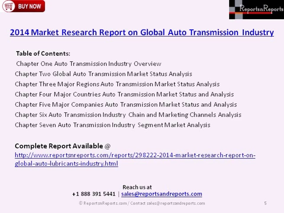 2014 Market Research Report on Global Auto lubricants Industry