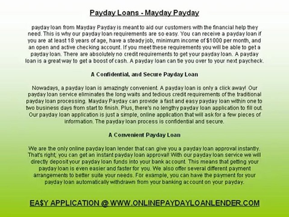 Payday Loans - Mayday Payday