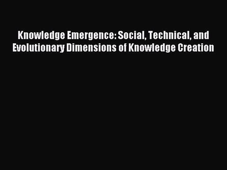 Read Knowledge Emergence: Social Technical and Evolutionary Dimensions of Knowledge Creation