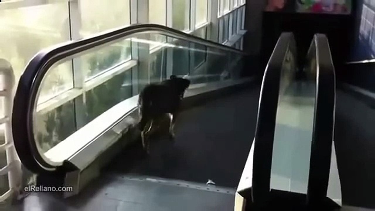 Смехота! -- Собака решила пройтись по эскалатору -) Глупая собака
