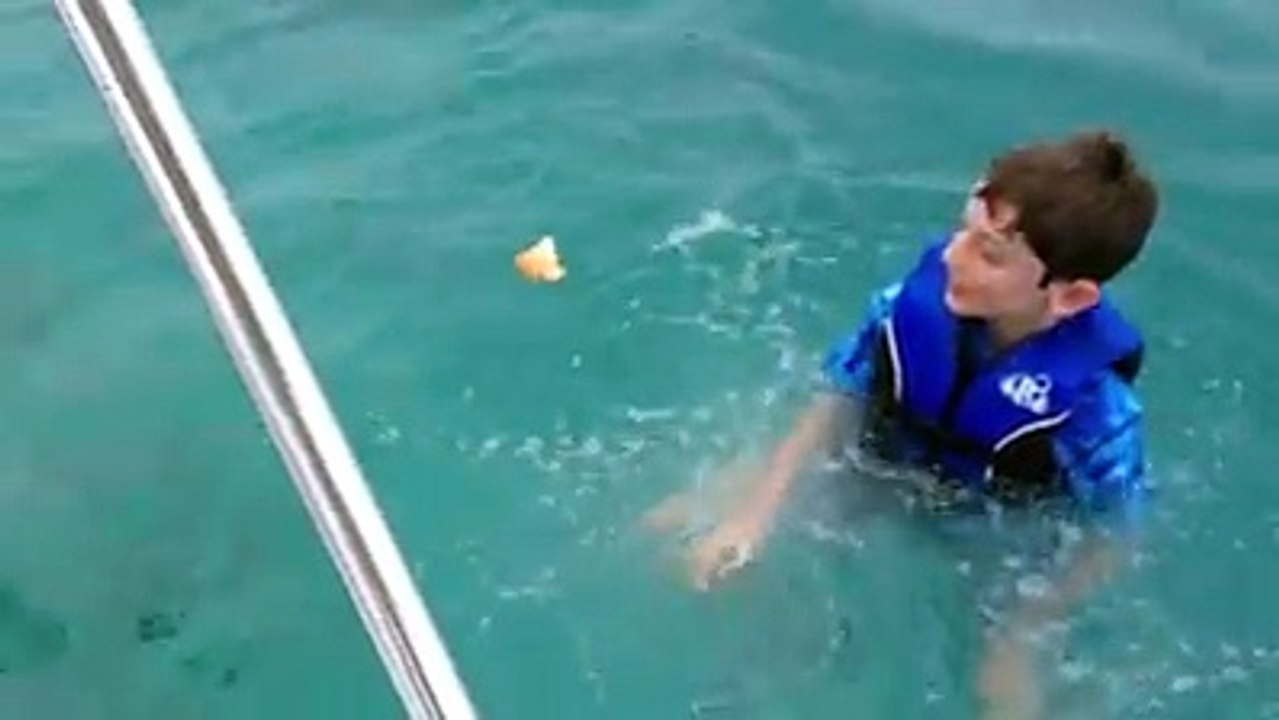 Funny Kid Swims With Fish