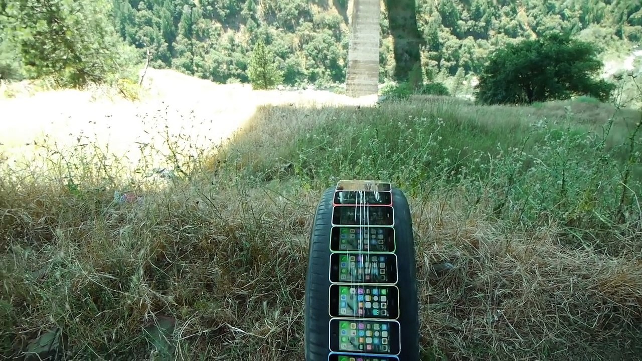 How Many iPhones Will Survive in Tire Rolling Down Cliff