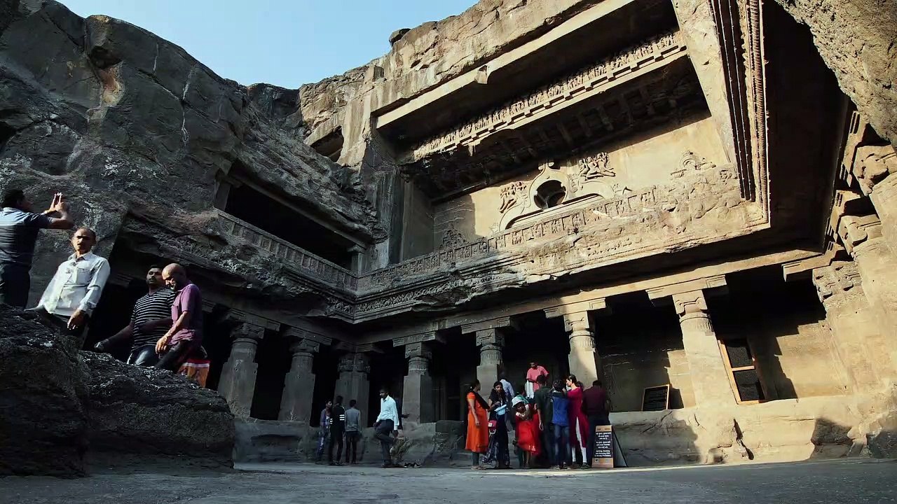Tourist Visiting The Ancient Kailash Temple In India