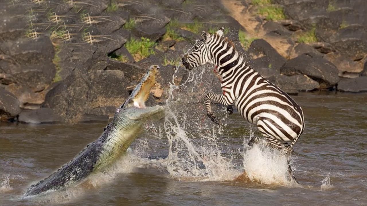 Brave Zebra Escapes From Two Crocodile Hunting - Crocodile Attack Fail