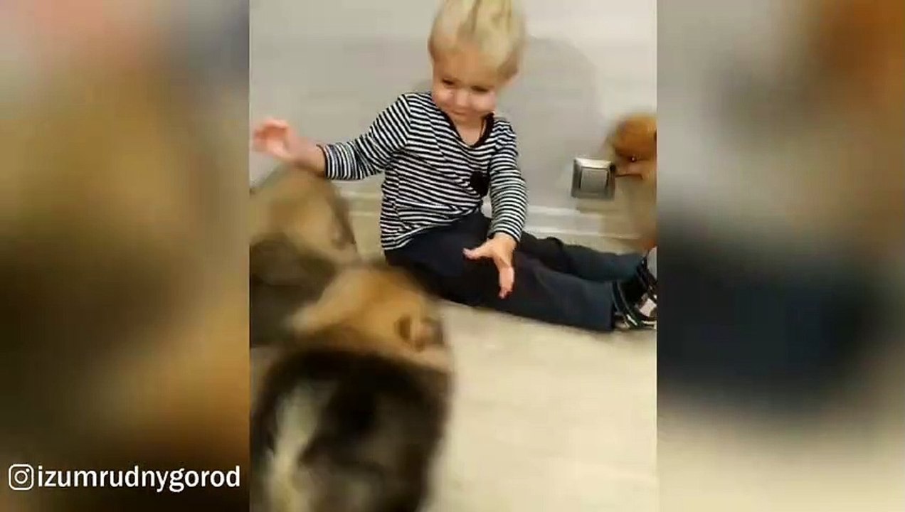 Pomeranian Pupppies Attack Cute Little Boy