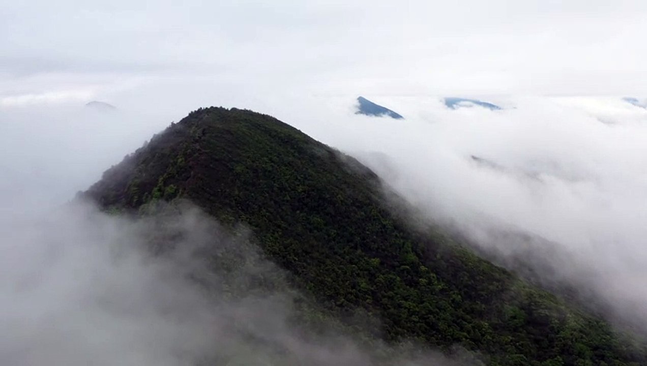 Mountain sky fog hills aerial