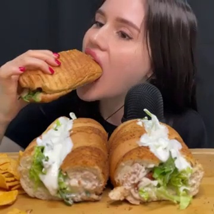 ASMR SUBWAY MUKBANG _ EATING FOOTLONG SANDWICH #asmr #mukbang #subway