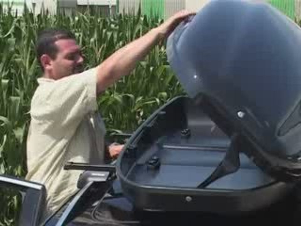 Coffre de toit avec fixation par étriers sur barres de toit