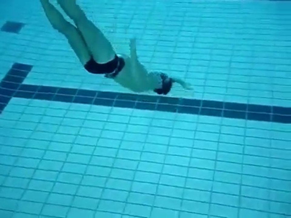Este señor tiene una habilidad especial: se coloca en el fondo de la piscina y empieza a hacer unos hipnóticos anillos bajo el agua.