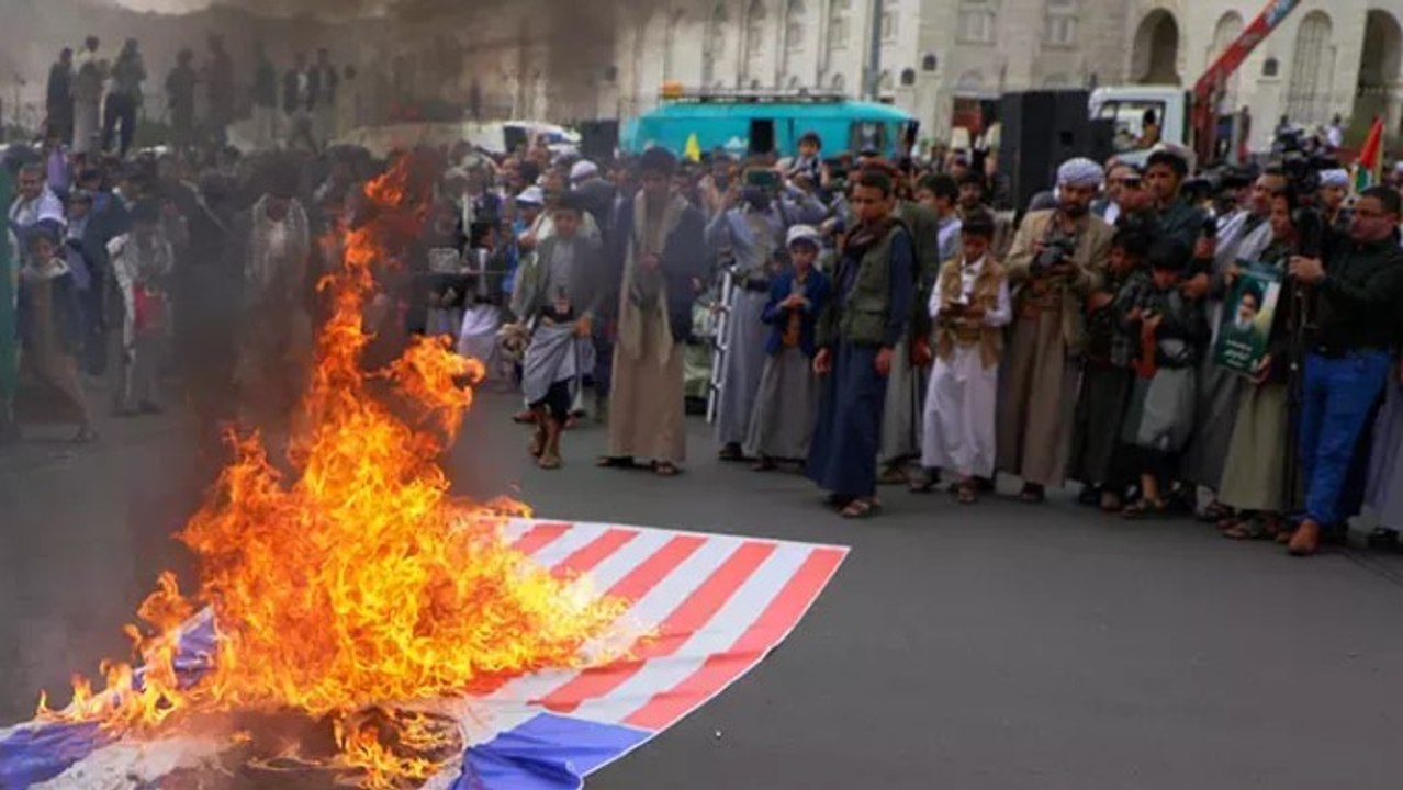 ABD ordusunun, Husi hedeflerine hava saldırısını Yemen’de binlerce kişi protesto etti