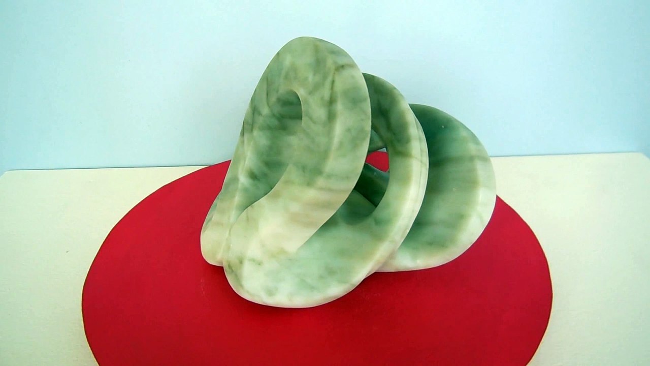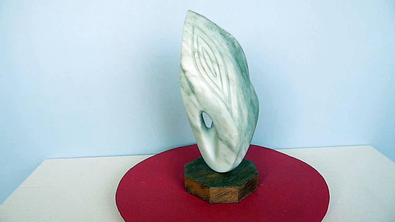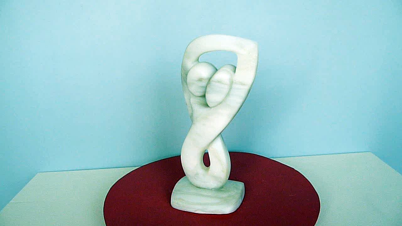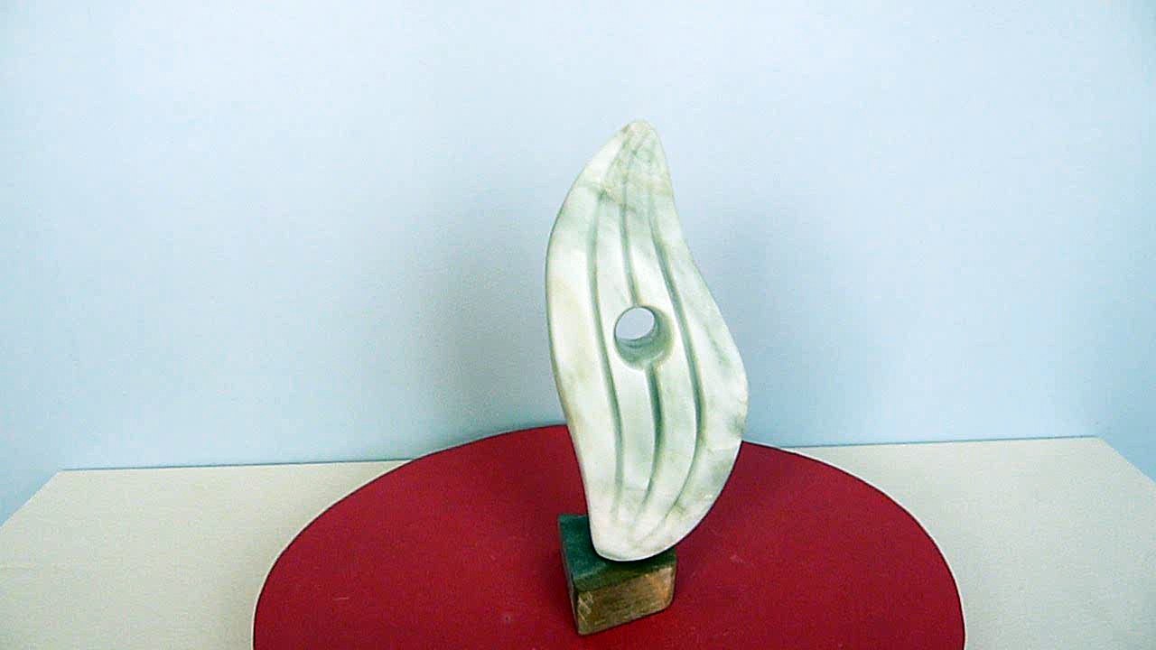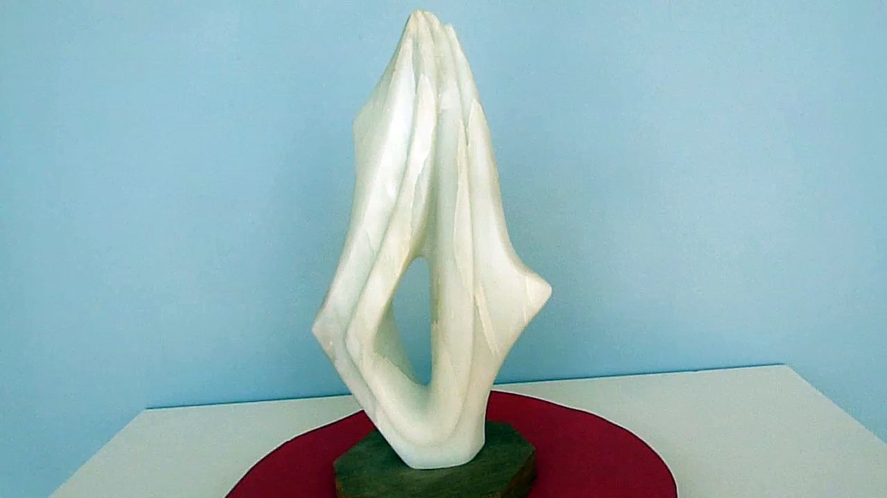Sculpture abstraite en stéatite, de couleur beige clair, dénommée "danseuse" en raison d'une certaine stylisation d'un mouvement de danse.