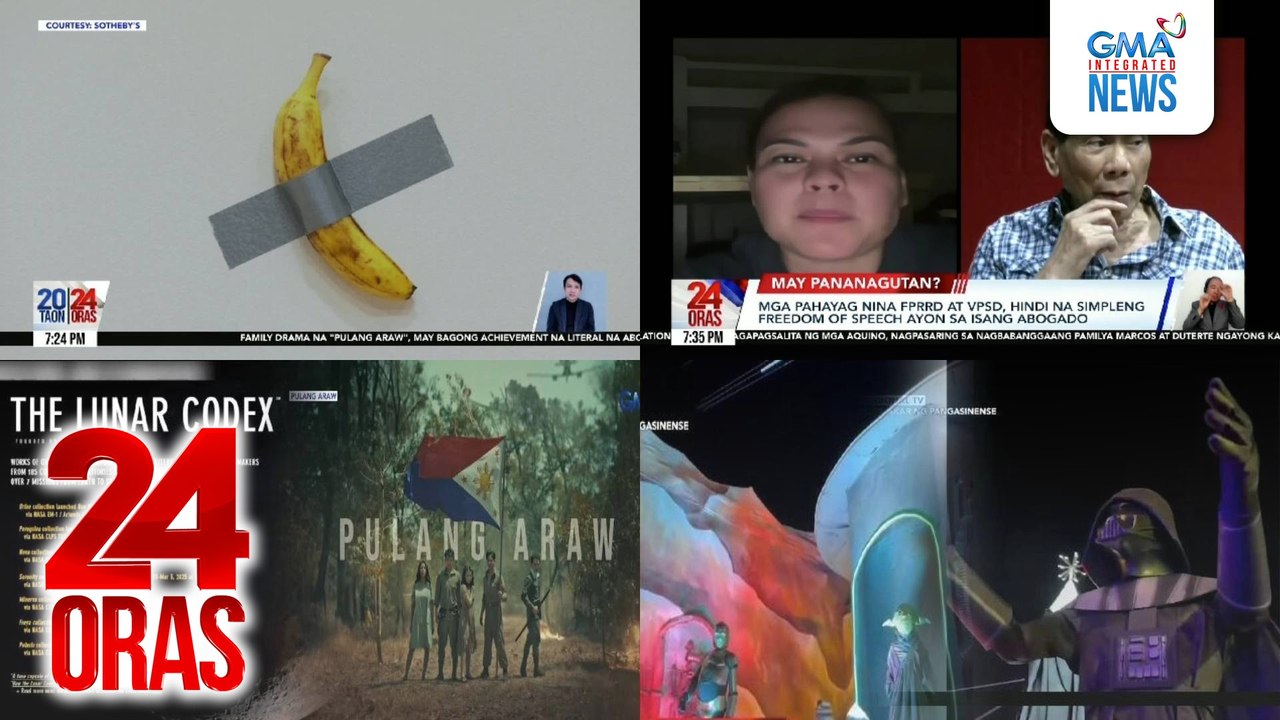 24 Oras: (Part 3) Saging na naka-duct tape sa pader, naibenta ng mahigit P365M?; Star Wars-themed Christmas display, hatid ang intergalactic experience; "Pulang Araw," isa sa mga napiling tv series para ipadala sa buwan, atbp.