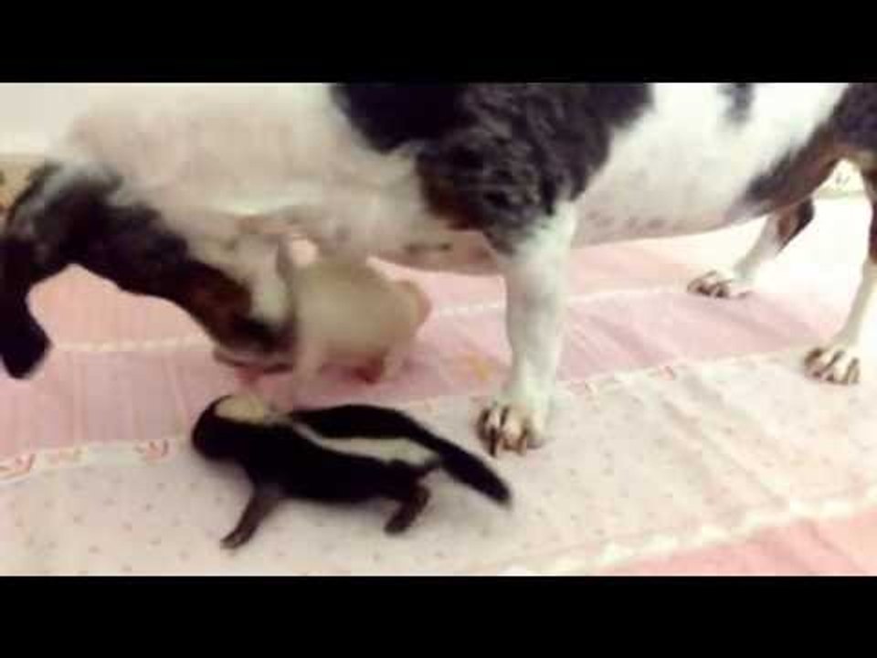 Caring Dog Looks After Baby Skunks