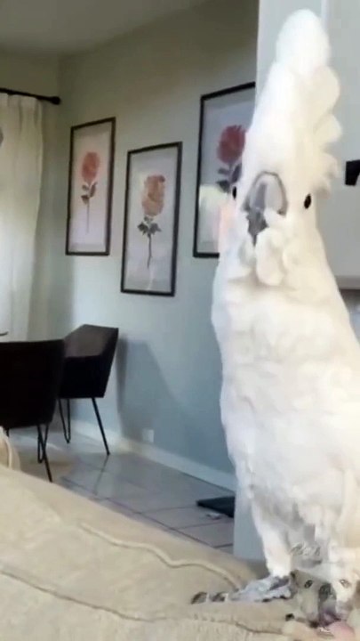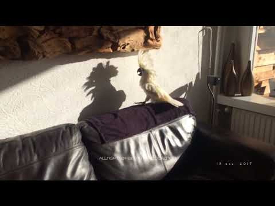 Cockatoo Misinterprets Her Own Shadow as Another Cockatoo