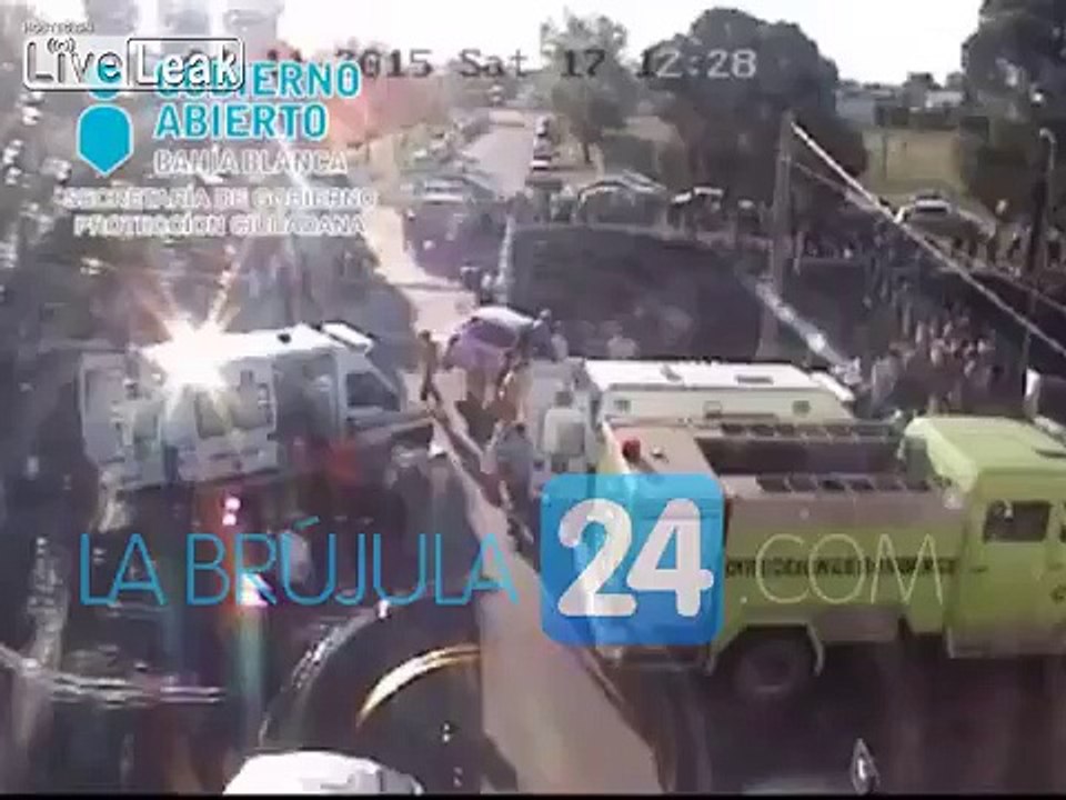 Motorcyclist crashes and falls into the river.