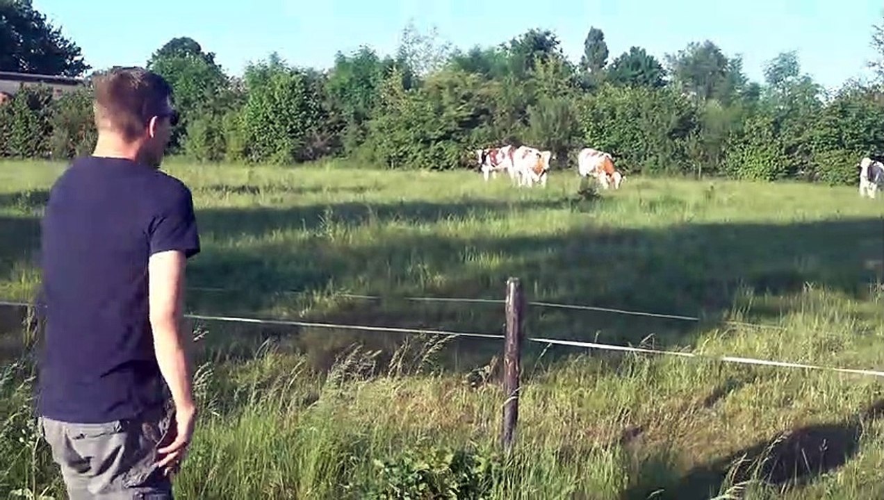 Cattle rush over after man calls them with loud burps
