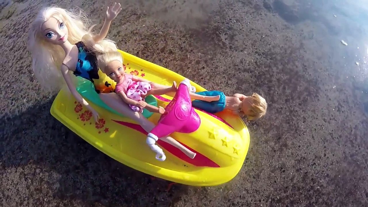 Frozen KIDS Octopus ATTACK! Disney Princess Elsa BARBIE Jetski Ride Toy Parody