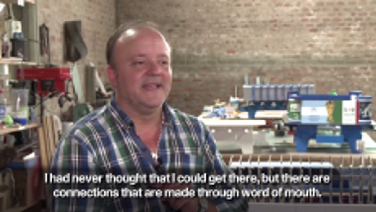 Argentine designer creates football tables, exact replica models of famous stadiums.