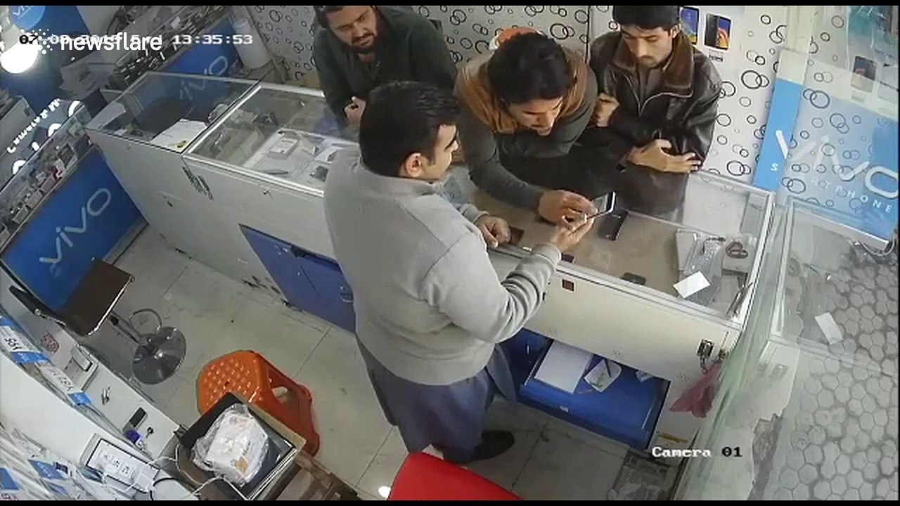 Security camera captures sneaky thieves ripping off mobile phone shop