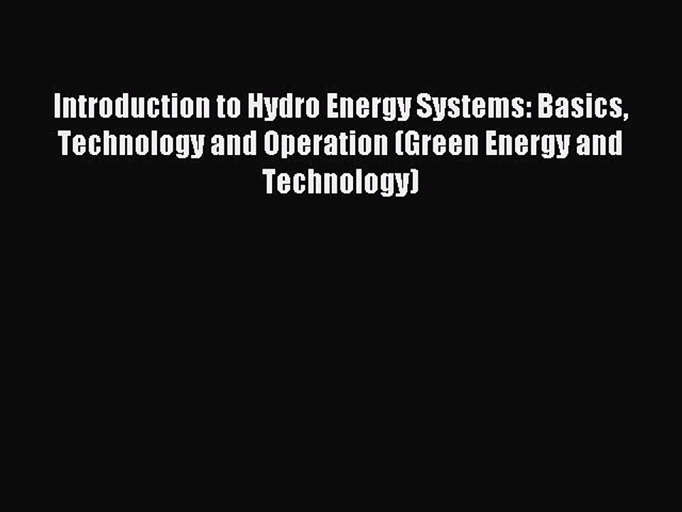 Download Introduction to Hydro Energy Systems: Basics Technology and Operation (Green Energy