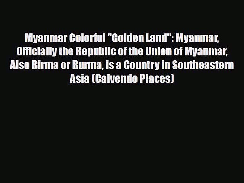 PDF Myanmar Colorful Golden Land: Myanmar Officially the Republic of the Union of Myanmar Also