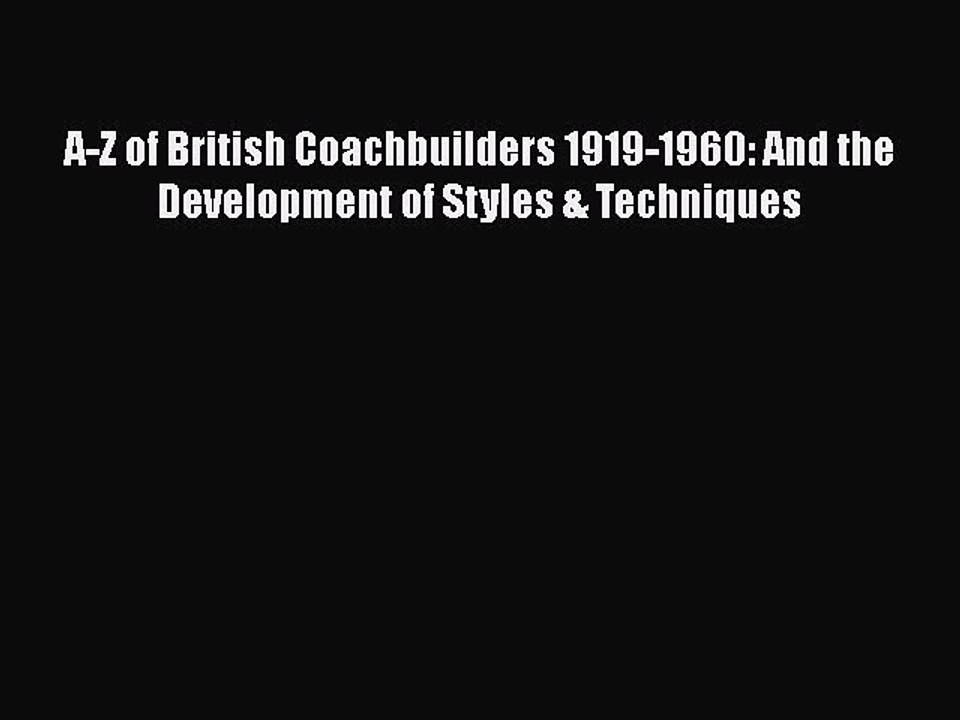 [PDF] A-Z of British Coachbuilders 1919-1960: And the Development of Styles & Techniques [Read]