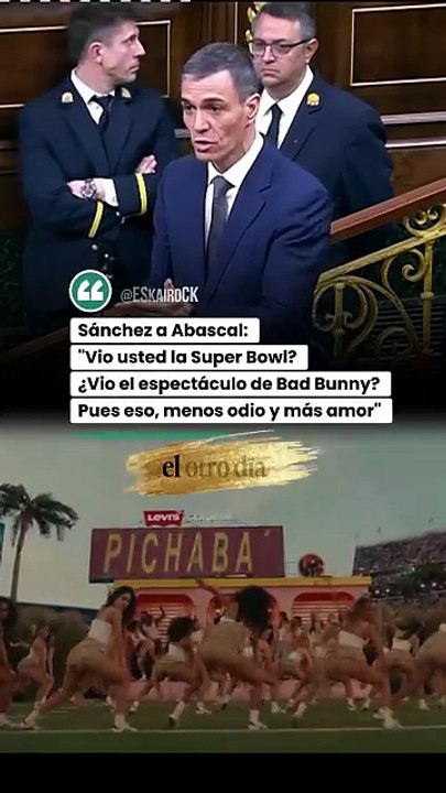 Sánchez a Abascal: "Vio usted la Super Bowl? ¿Vio el espectáculo de Bad Bunny? Pues eso, menos odio y más amor"