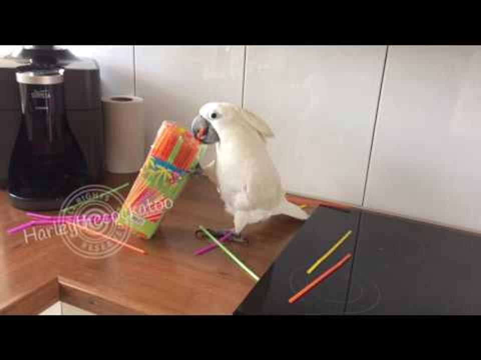 Saucy Cockatoo Goes to Town on Defenceless Straws