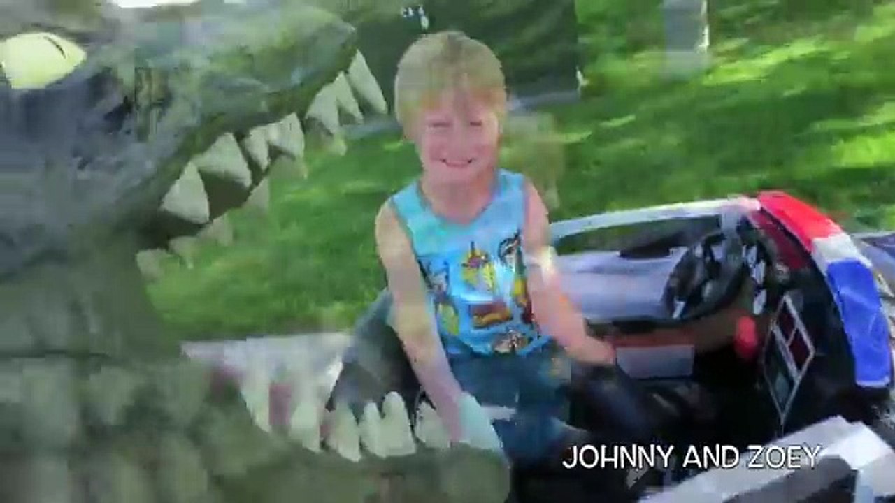 KID POLICE CAR by Kid Trax Chased By JURASSIC WORLD Puppet in Power Wheels Style Kid Car V