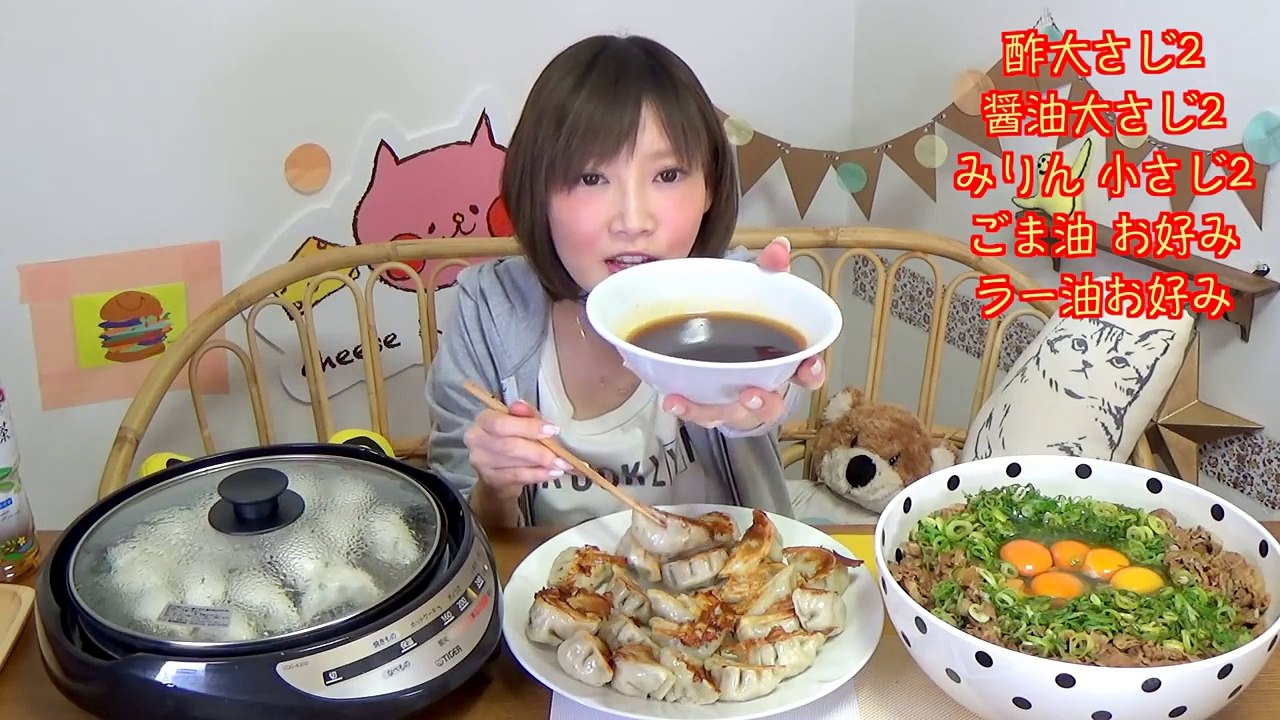 【MUKBANG】 Frying 1.2Kg Of Dumplings & 3.1Kg Of Onions Egg Beef Bowl! 4.3Kg, 10372kcal [CC Available]-cJ14hA3GNtc