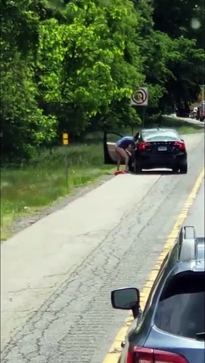Un homme bloqué dans les bouchons se lâche au bord de la route !
