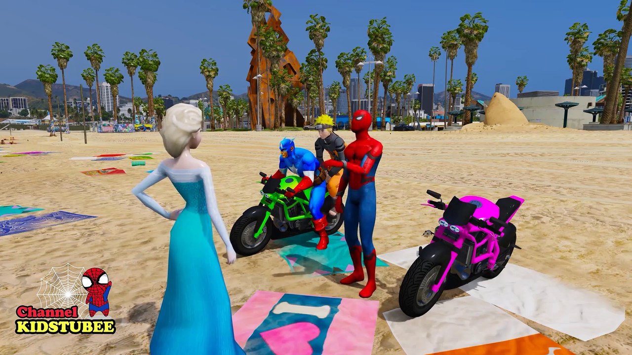 Learn Colors with Motor Bikes Party & Supper Cars in Spiderman, Elsa, Naruto Cartoons for Children