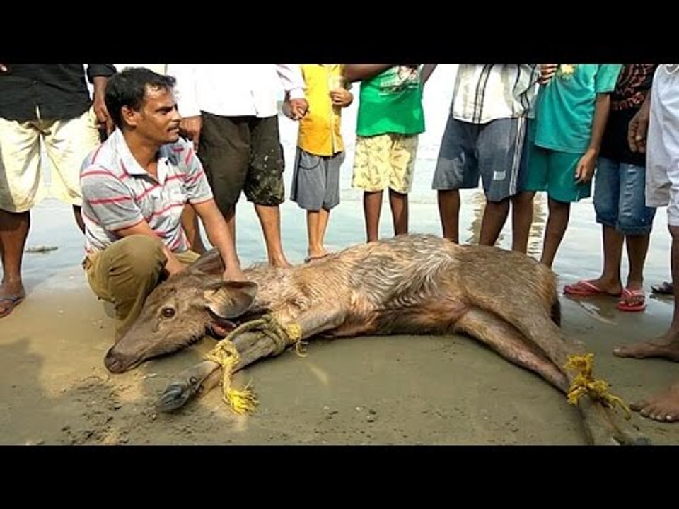 Stag Rescued From Sea By Localites In Karwar