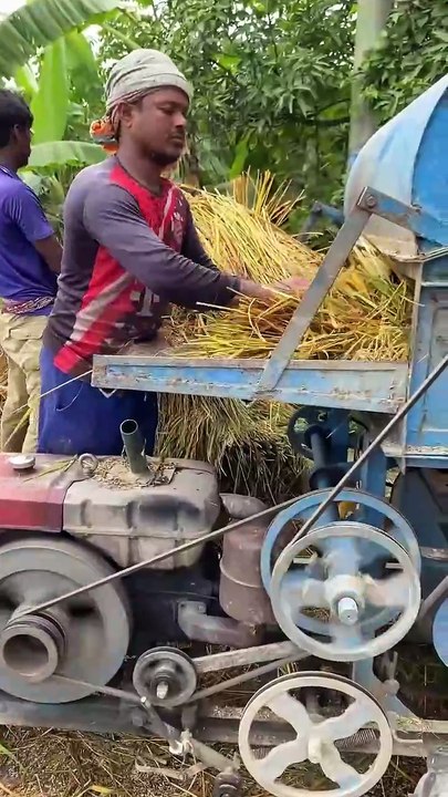 Rice Threshing Method Using a Modern Rice Threshing Machine