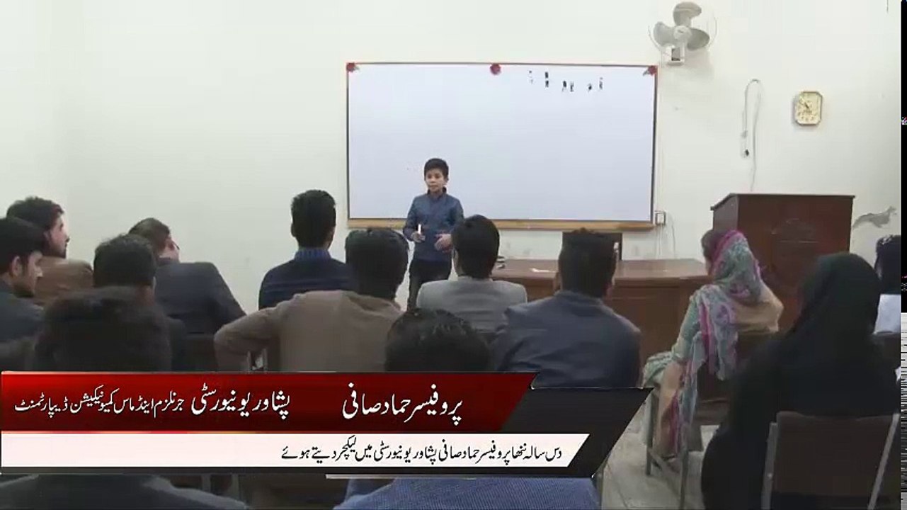 پشاور یونیورسٹی میں جرنلزم اینڈ ماس کومیو نیکشن ڈیپارٹمنٹ کے طلبا کو لیکچر اور انکے سوالات کے جوابات..یہ سیشن تقریبا ایک گھنٹہ پر مشتمل تھا