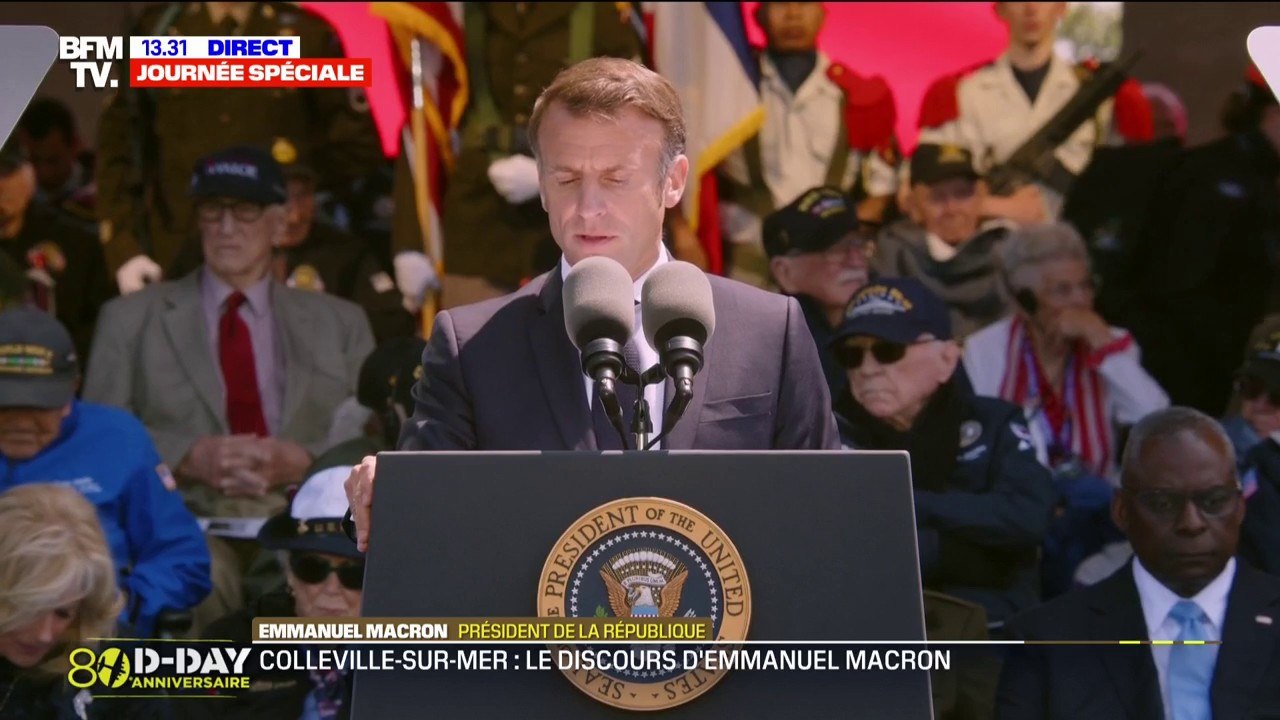 "Vous aviez des rêves, des projets, un avenir et vous avez tout quitté": Emmanuel Macron salue les vétérans lors de la cérémonie des 80 ans du Débarquement