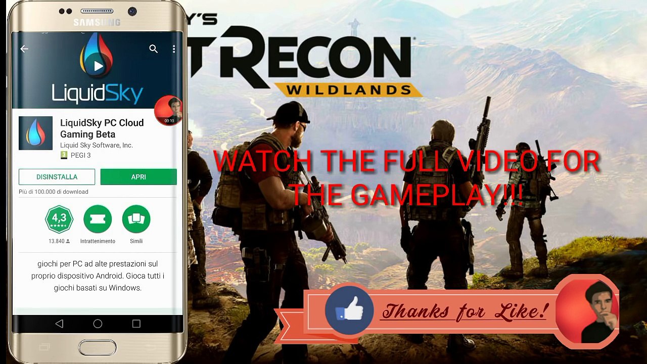 Here Download 100% real GHOST RECON WILDLANDS in your android device(beta) PC game liquidsky