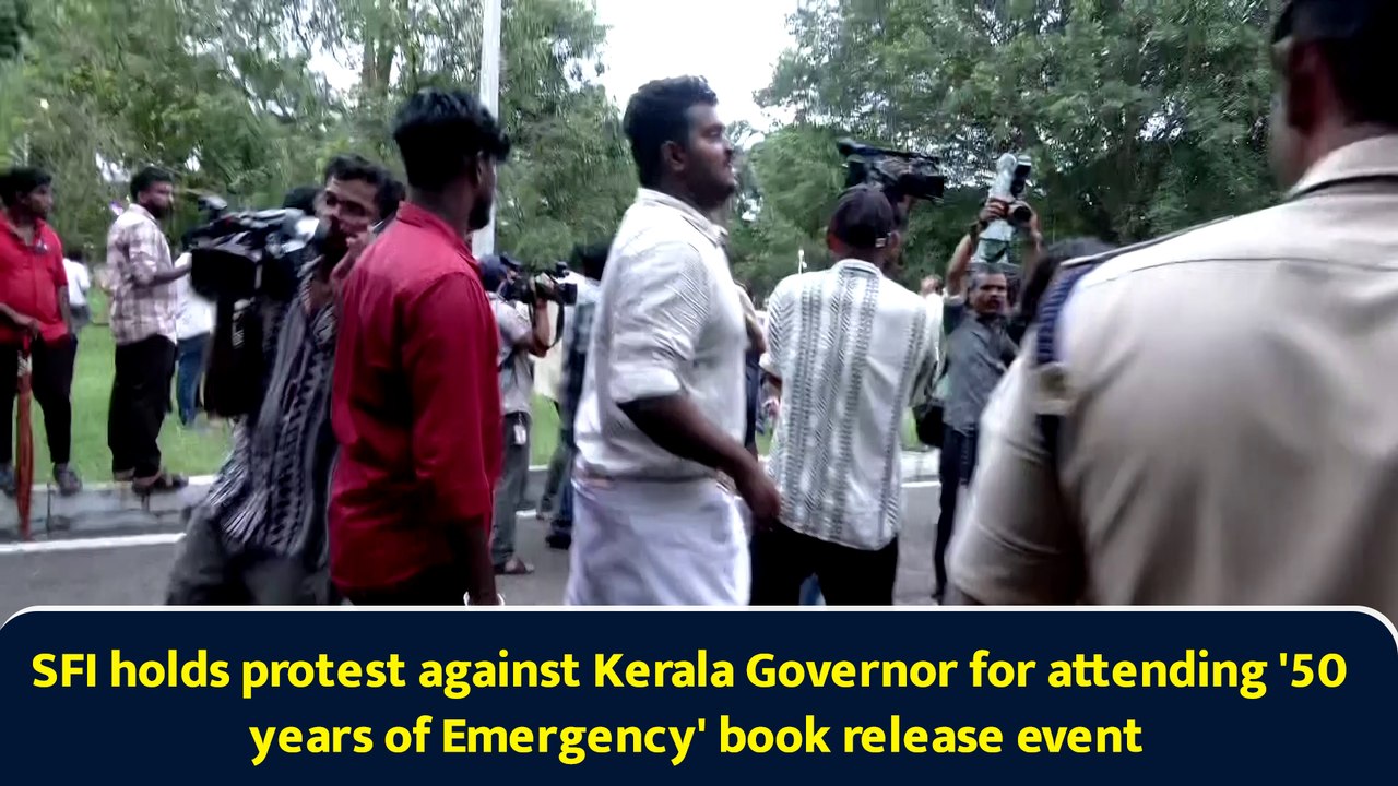 SFI holds protest against Kerala Governor for attending '50 years of Emergency' book release event