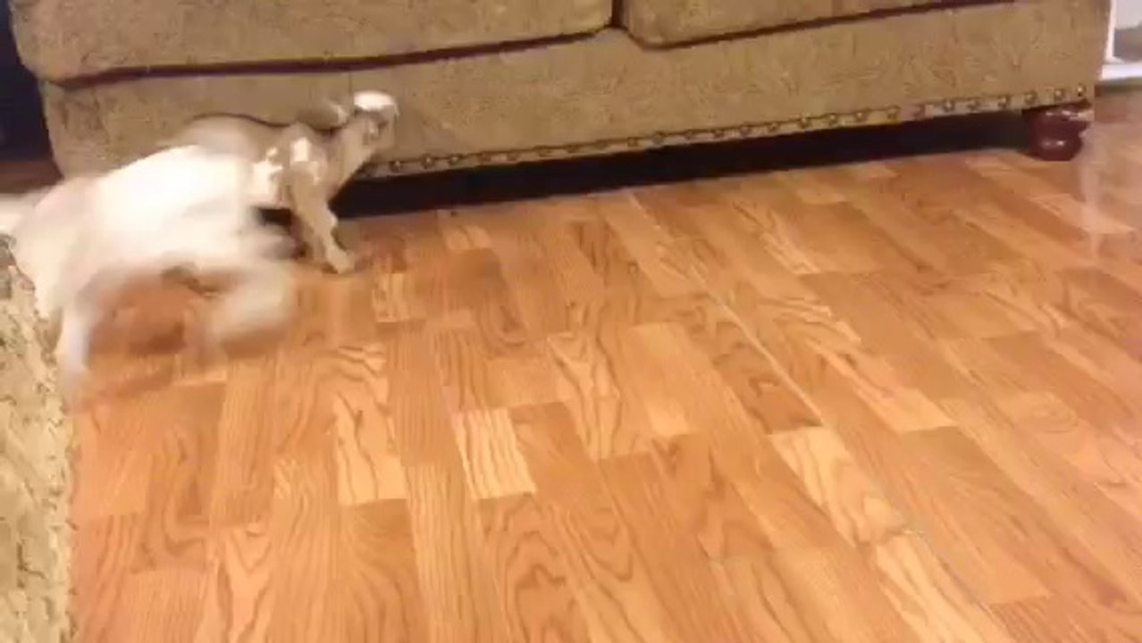 Excited Baby Dwarf Goats Have Fun Indoors